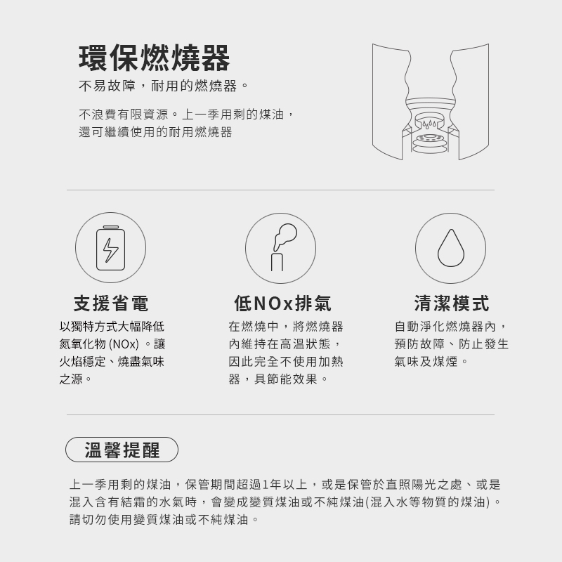遙控操作方便:附遙控器,可遠距控制暖爐,操作更輕鬆。