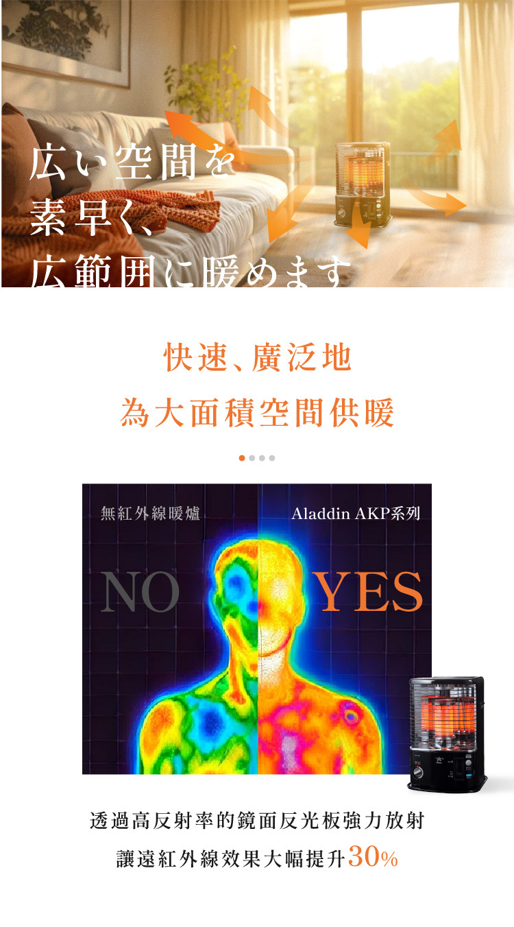 廣角多面反射板暖房更快速