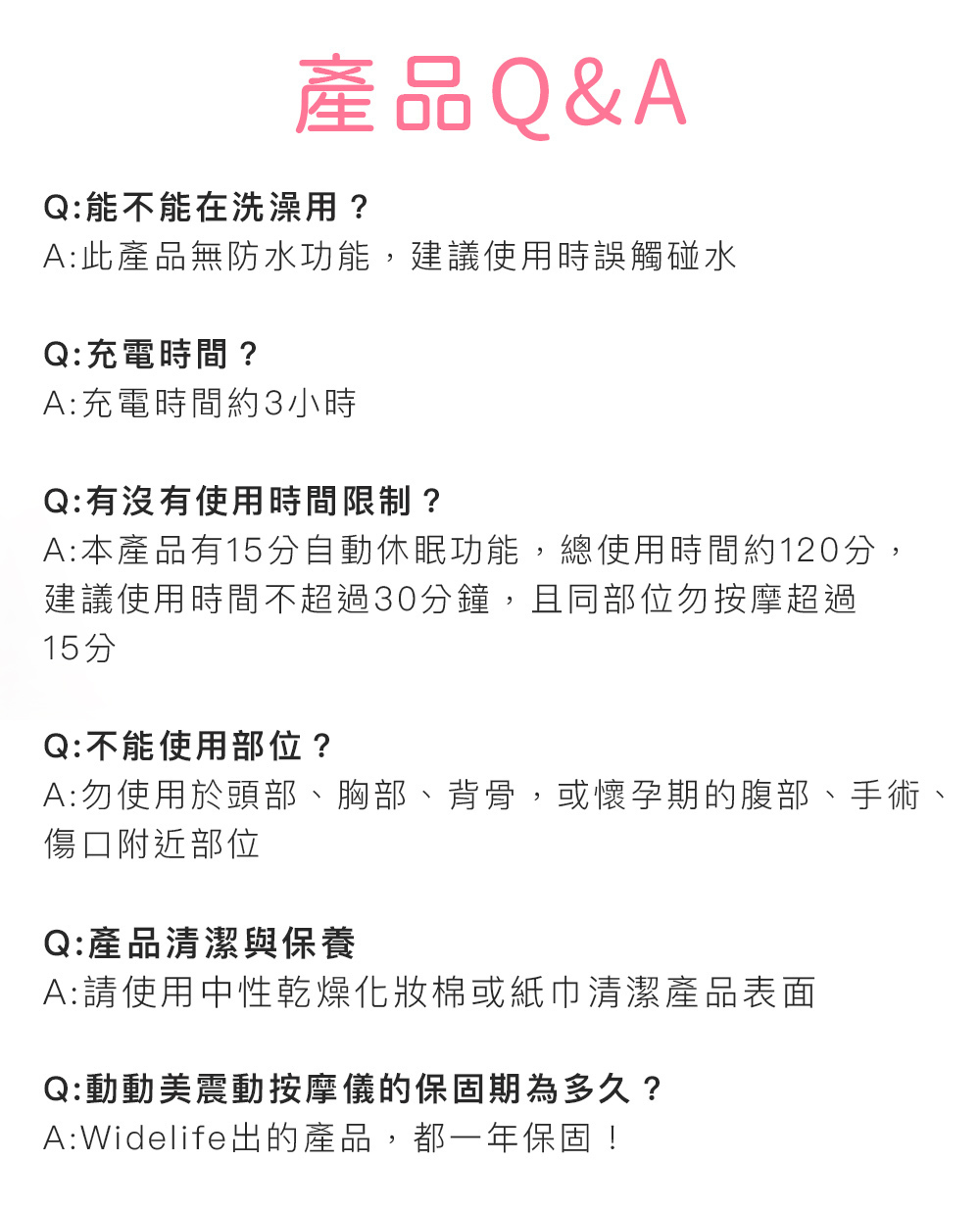 8.請勿在同一部位按摩超過15分鐘。
