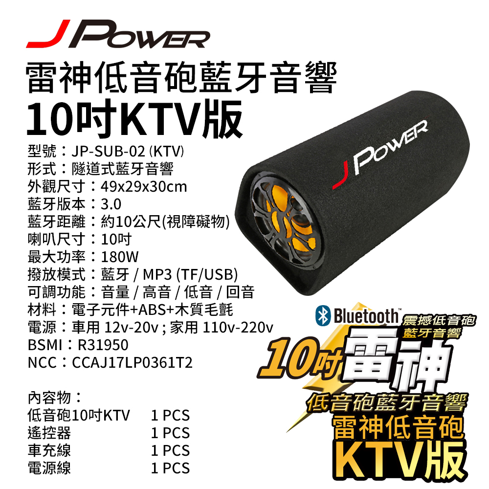【J-POWER】 雷神低音砲 藍芽音響 10吋 KTV版