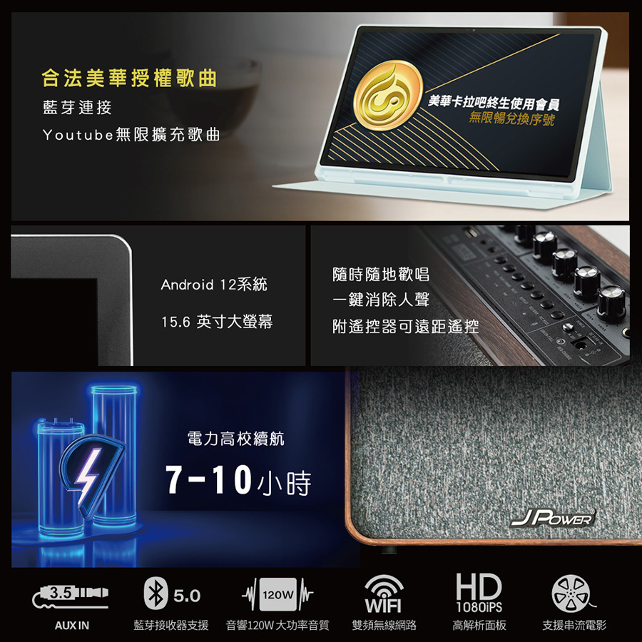 【J-POWER】15.6吋 美華平板歡唱組+6.5吋實木重砲版