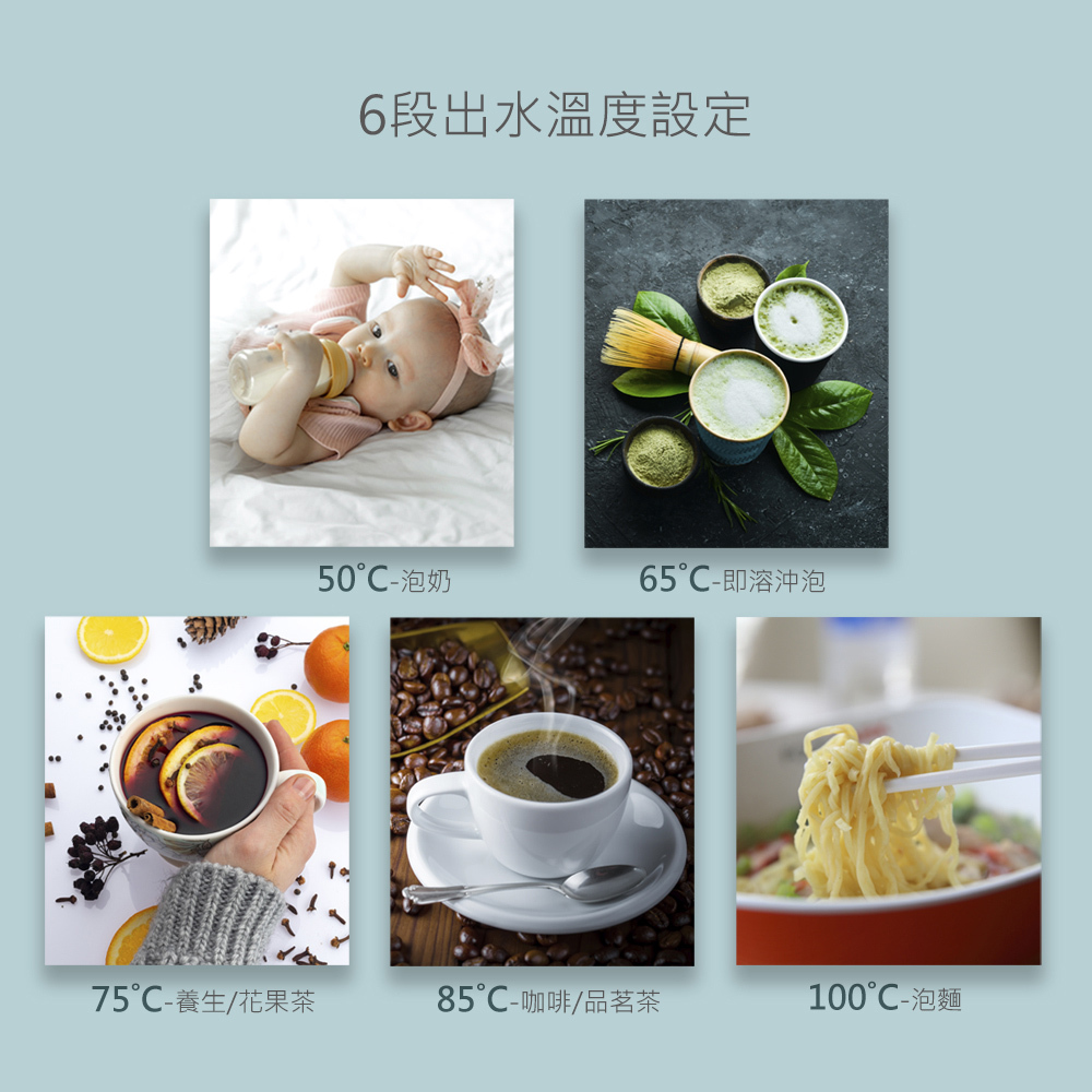 水溫設定  6段水溫(常温/50°C/65°C/75°C/85°C/100°C)