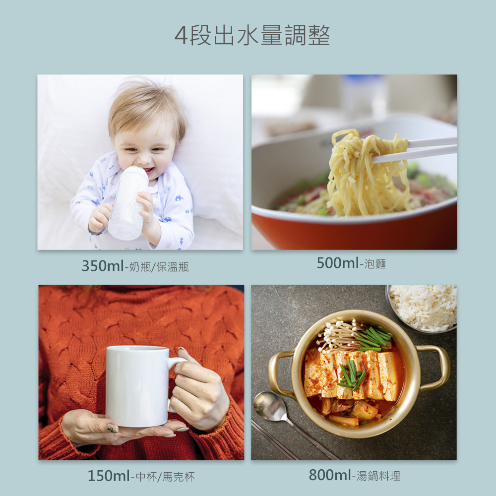出水設定  4段水量(150/350/500/800ml)