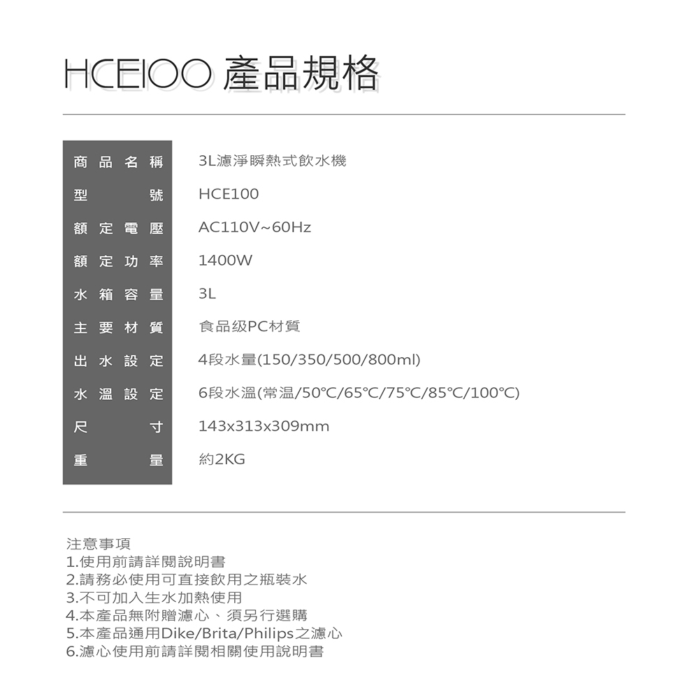 商品名稱  3L濾淨瞬熱式飲水機