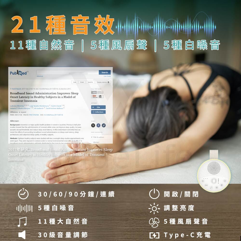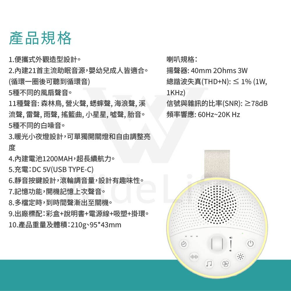 2:內建21首主流助眠音源,嬰幼兒成人皆適合。(循環一圈後可聽到循環音)